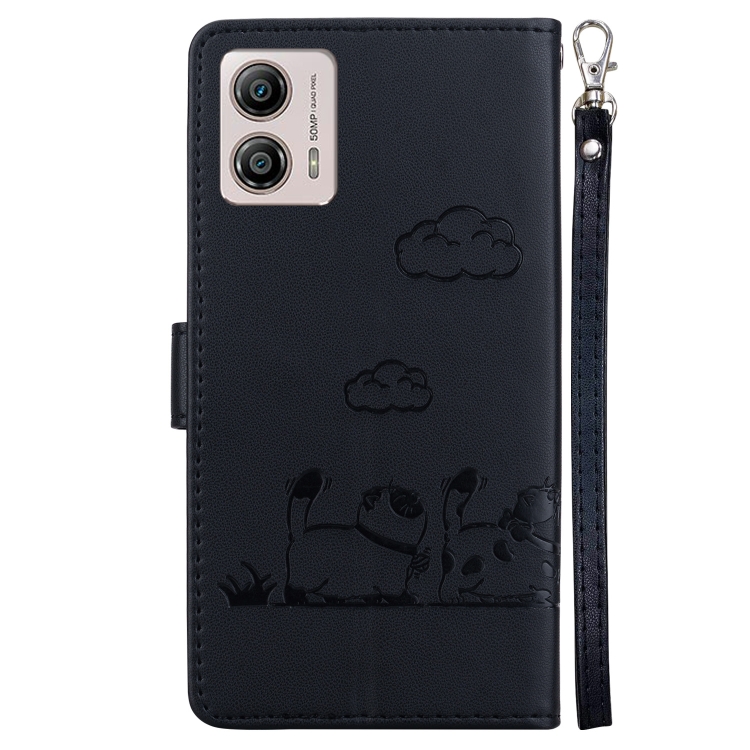 Funda de Cuero Rfid para Motorola Moto G13/G23/G53 con Diseño de Gatos (Negra)