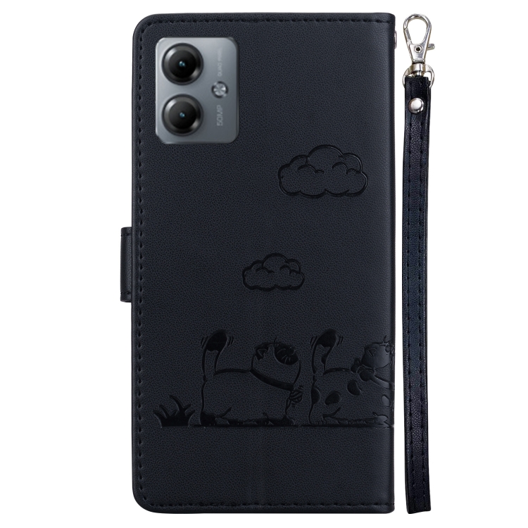 Funda de Cuero Rfid para Motorola Moto G14 con Diseño de Gatos (Negra)