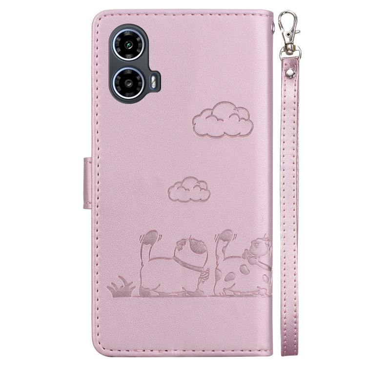 Funda de Cuero Rfid para Motorola Moto G34 5G con Diseño de Gatos (Oro Rosa)