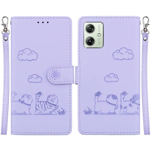 Funda de Cuero Rfid para Motorola Moto G54 con Diseño de Gatos (Morado)