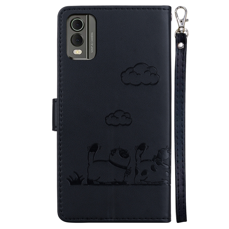 Funda de Cuero Rfid para Nokia C32 con Diseño de Gatos (Negra)
