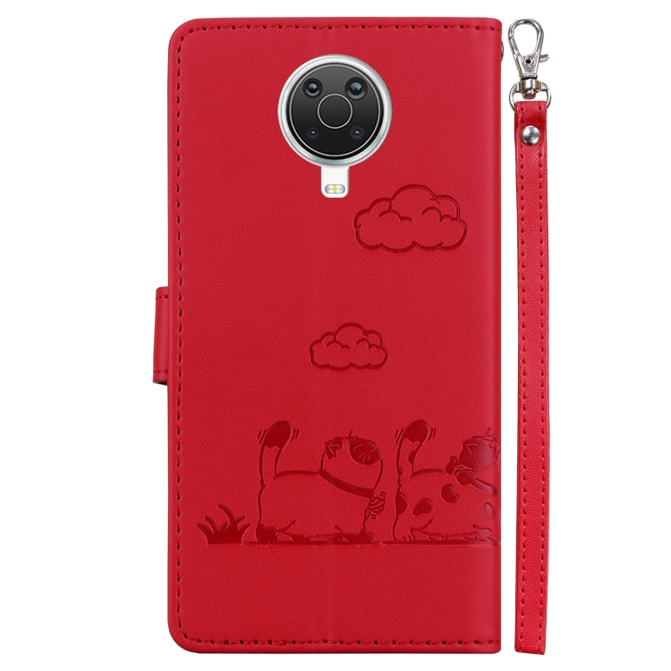 Funda de Cuero Rfid para Nokia G10/G20 con Diseño de Gatos (Roja)