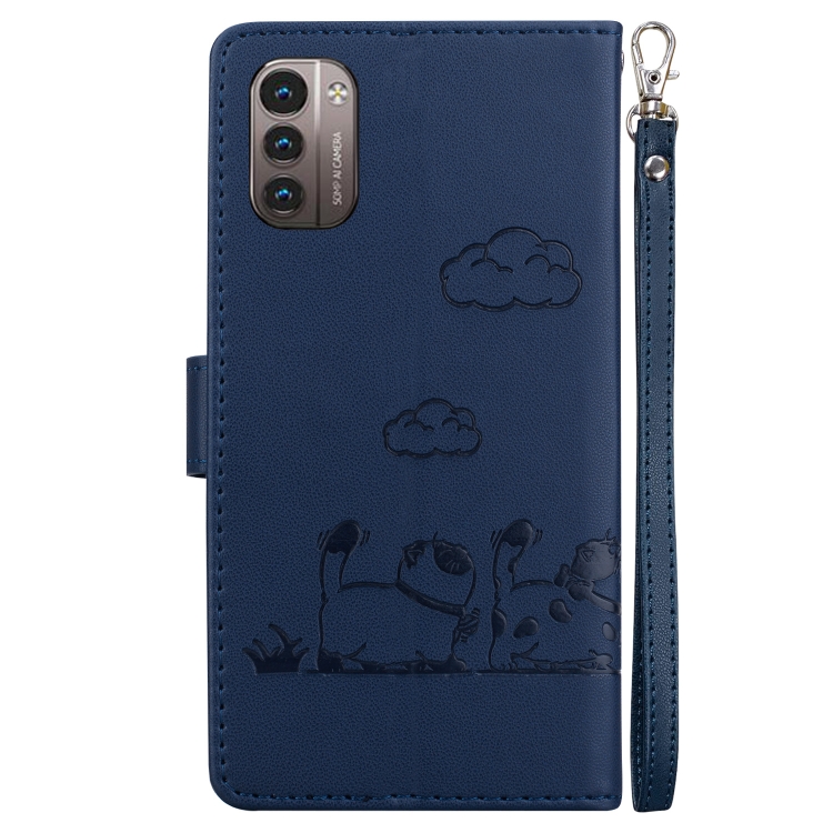 Funda de Cuero Rfid para Nokia G21/G11 con Diseño de Gatos (Azul)