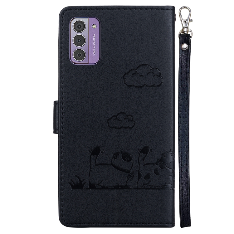 Funda de Cuero Rfid para Nokia G42 con Diseño de Gatos (Negra)