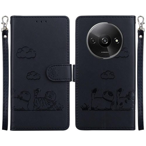 Funda de Cuero Rfid con Diseño de Gatos para Redmi A3 (Negra)