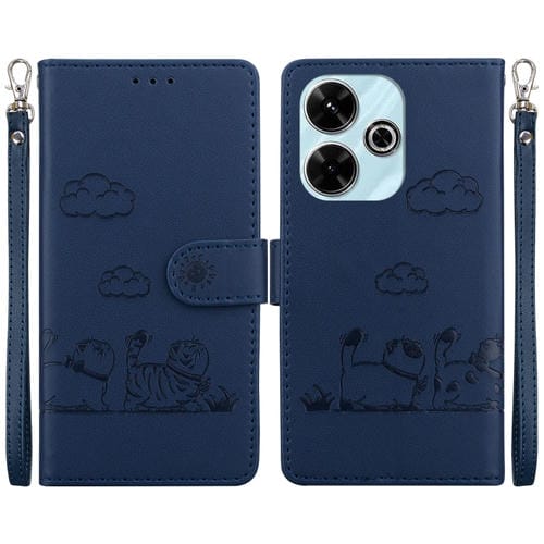Funda de Cuero Rfid con Diseño de Gatos para Xiaomi Poco M6 4G (Azul)