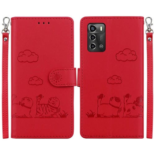 Funda de Cuero Rfid para ZTE Blade A72 y V40 Vita con Diseño de Gatos (Rojo)