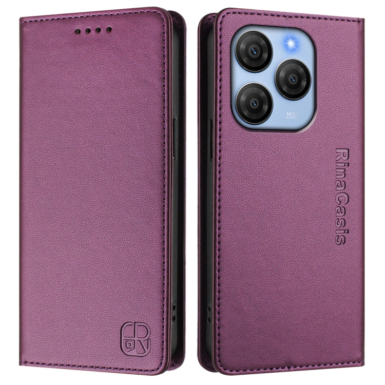 Funda de Cuero Rfid con Doble Pliegue y Succión Magnética para BlackView Shark 9 Rc01 (Violeta)