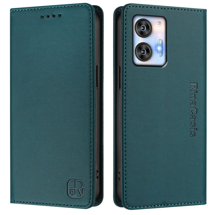 Funda de Cuero RFID con Doble Pliegue y Succión Magnética para Oukitel C35 Rc01 (Verde Oscuro)