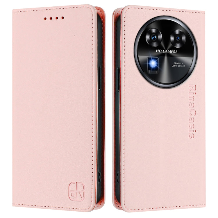 Funda de Cuero Rfid con Doble Pliegue y Succión Magnética para Oukitel C37 Rc01 (Rosa)