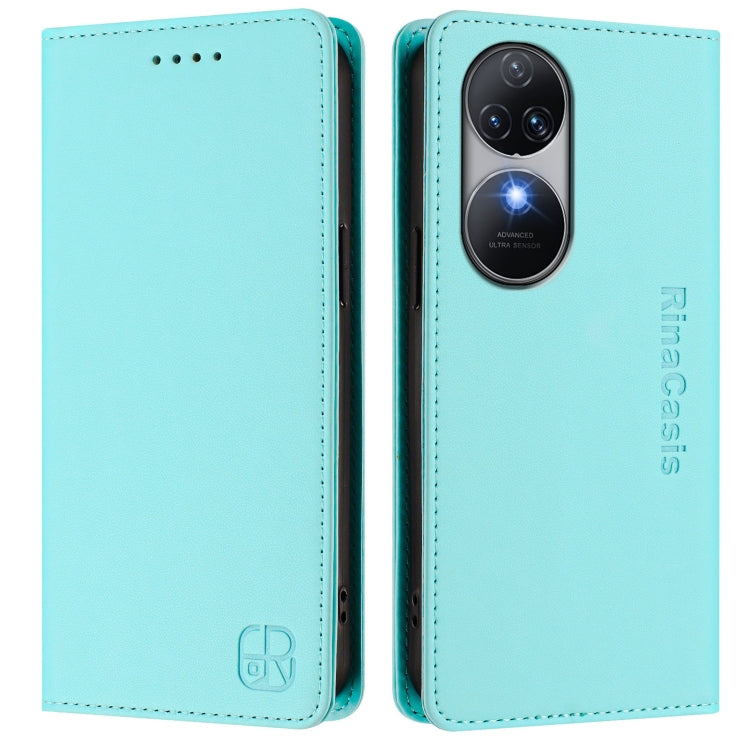 Funda de Cuero Rfid para Oukitel C38 Rc01 con Doble Pliegue y Succión Magnética (Verde Menta)