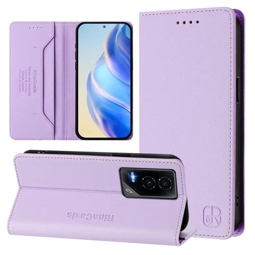 Funda de Cuero Rfid con Doble Pliegue y Succión Magnética para Honor Gt Rc01 (Morado Claro)