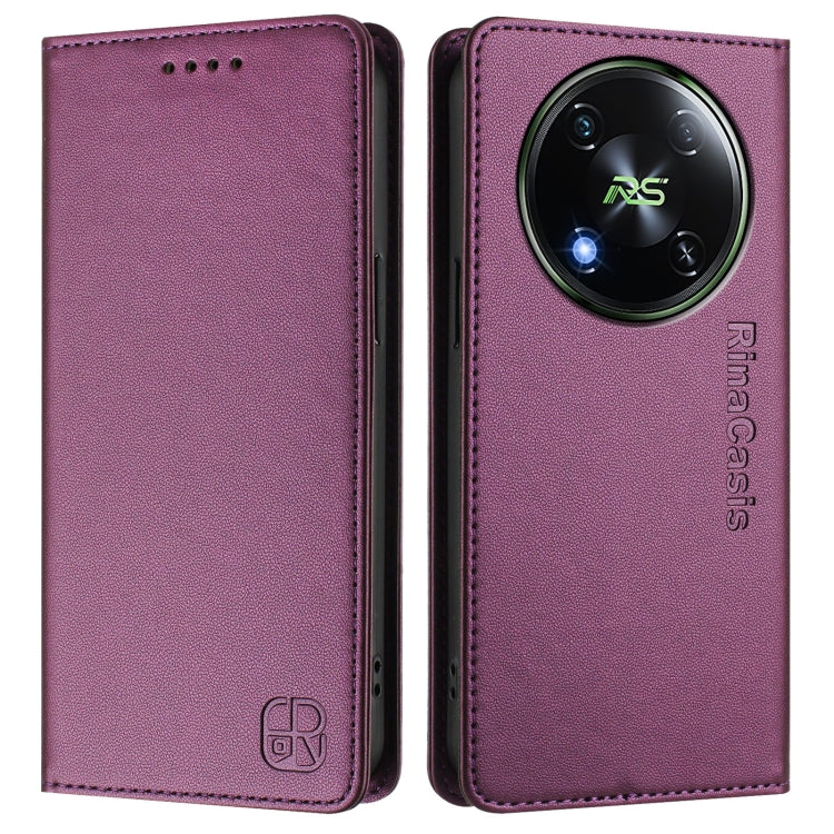 Funda de Cuero Rfid para Teléfono Itel Rs4/S666Ln Rc01 con Doble Pliegue y Succión Magnética (Violeta)