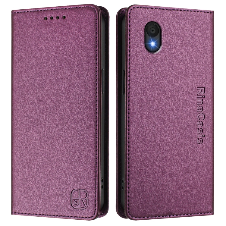 Funda de Cuero Rfid para Teléfono TCL 201 Rc01 con Doble Pliegue y Succión Magnética (Violeta)