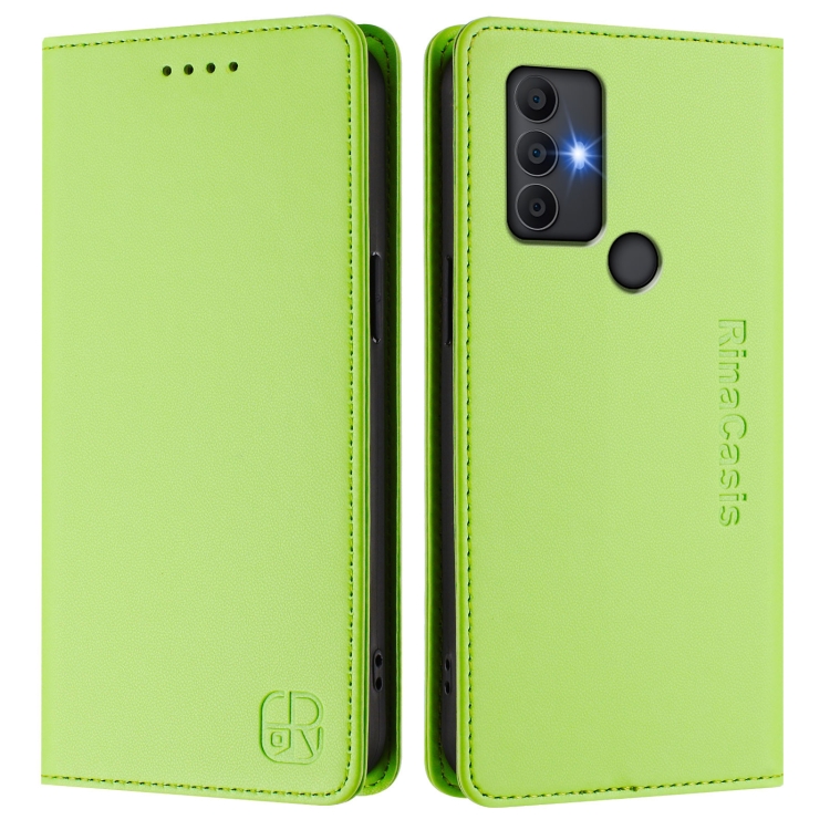 Funda de Cuero Rfid para Teléfono TCL 305/306 Rc01 con Doble Pliegue y Succión Magnética (Verde Hierba)