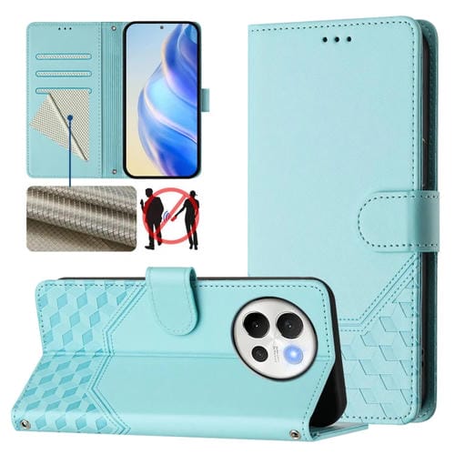 Funda de Cuero Rfid con Relieve de Panal Global para Vivo V40 Lite 5G/V30E 5G (Verde Menta)