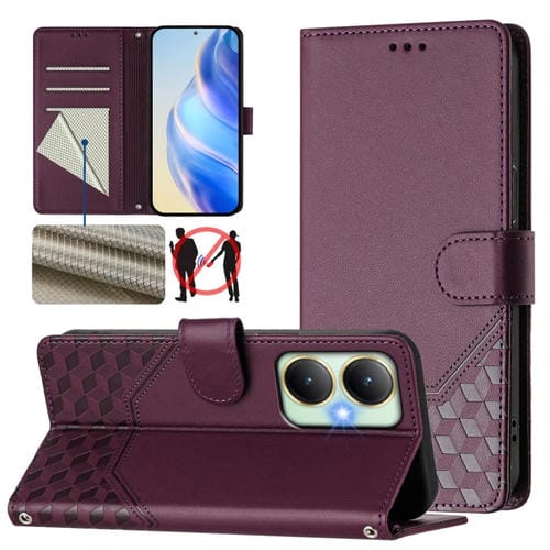 Funda de Cuero Rfid con Relieve de Panal Global para Vivo Y27 4G 2023 (Violeta)