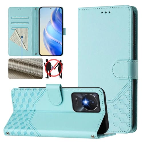 Funda de Cuero Rfid con Relieve de Panal para Vivo Y02A 4G / Y02 4G / Y11 2023 / Y02T (Verde Menta)