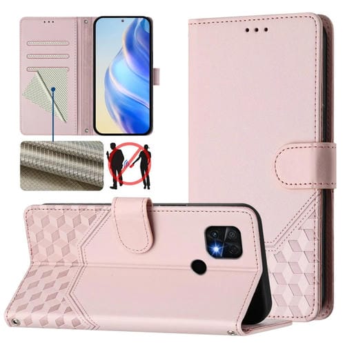 Funda de Cuero Rfid con Relieve de Panal para Xiaomi Poco C40/Redmi 10C (Rosa)