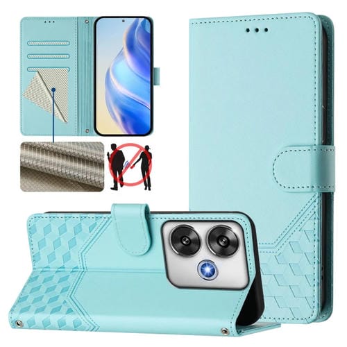 Funda de Cuero Rfid con Relieve de Panal para Xiaomi Poco F6 5G (Verde Menta)