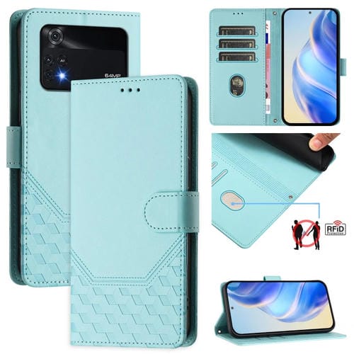Funda de Cuero Rfid con Relieve de Panal para Xiaomi Poco M4 Pro 4G (Verde Menta)