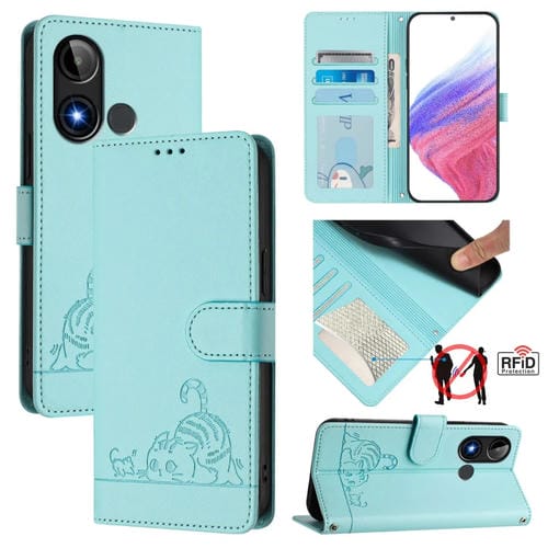 Funda Cuero RFID Blu C9 Relieve Rata y Gato con Cordón (Verde Menta)