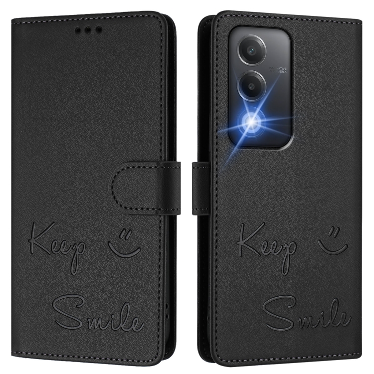 Funda de Cuero Rfid con Relieve de Sonrisa Global para Oppo K12X 5G (Negra)