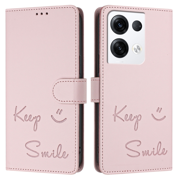 Funda de Cuero Rfid con Relieve de Sonrisa Global para Oppo Reno8 Pro 5G (Rosa)