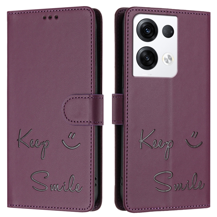 Funda de Cuero Rfid con Relieve de Sonrisa Global para Oppo Reno8 Pro 5G (Violeta)