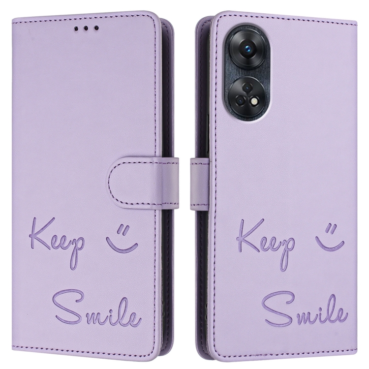 Funda de Cuero Rfid con Relieve de Sonrisa Global para Oppo Reno8 T 4G (Morado Claro)