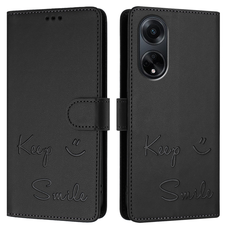 Funda de Cuero Rfid con Relieve de Sonrisa India para Oppo A98 5G/F23 5G (Negra)