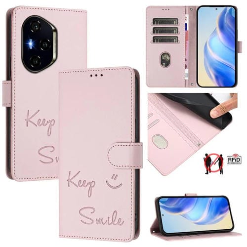 Funda de Cuero Rfid con Relieve de Sonrisa para Honor 300 Pro 5G y 300 Ultra 5G (Rosa)