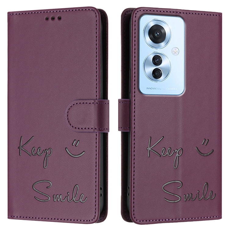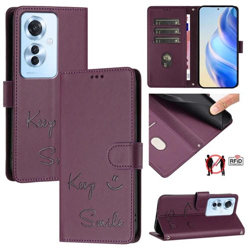 Funda de Cuero Rfid con Relieve de Sonrisa para Oppo F25 Pro 5G (Violeta)