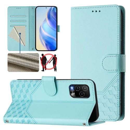 Funda de Cuero RFID con Relieve en Panal para Blu View 5 Pro (Verde Menta)