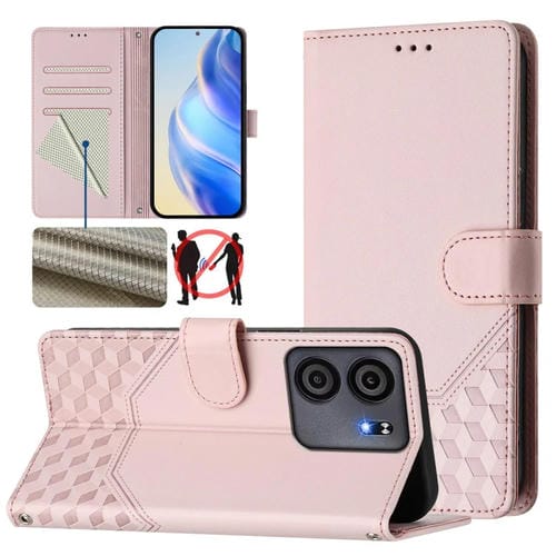 Funda de Cuero RFID con Relieve en Panal para Blu View 5 (Rosa)