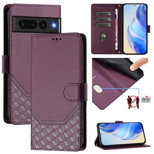 Funda de Cuero Rfid con Relieve en Panal para Google Pixel 7 Pro (Violeta)