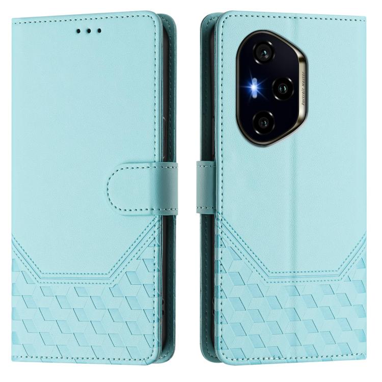Funda de Cuero Rfid con Relieve en Panal para Honor 300 Pro 5G/300 Ultra 5G (Verde Menta)
