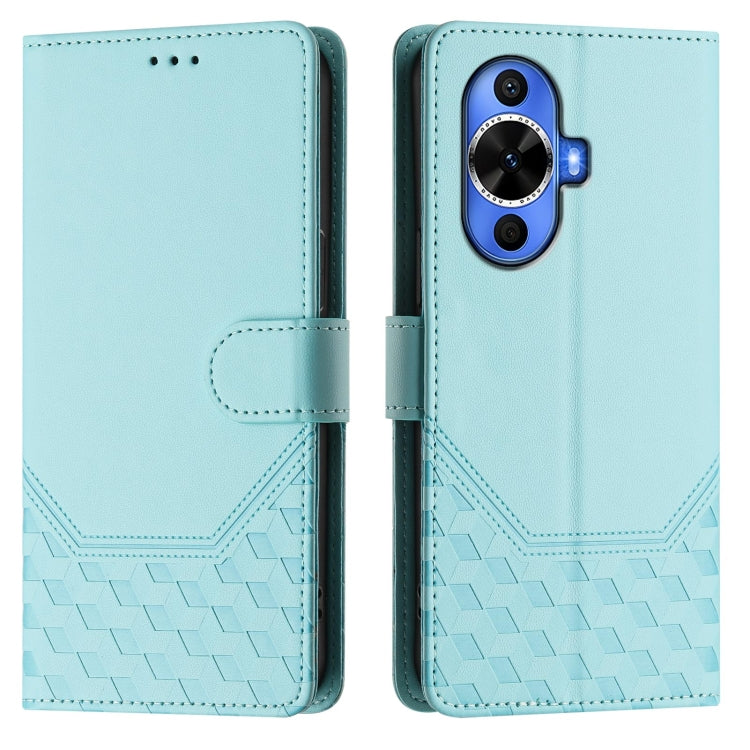 Funda de Cuero Rfid con Relieve en Panal para Huawei Nova 12S 4G (Verde Menta)