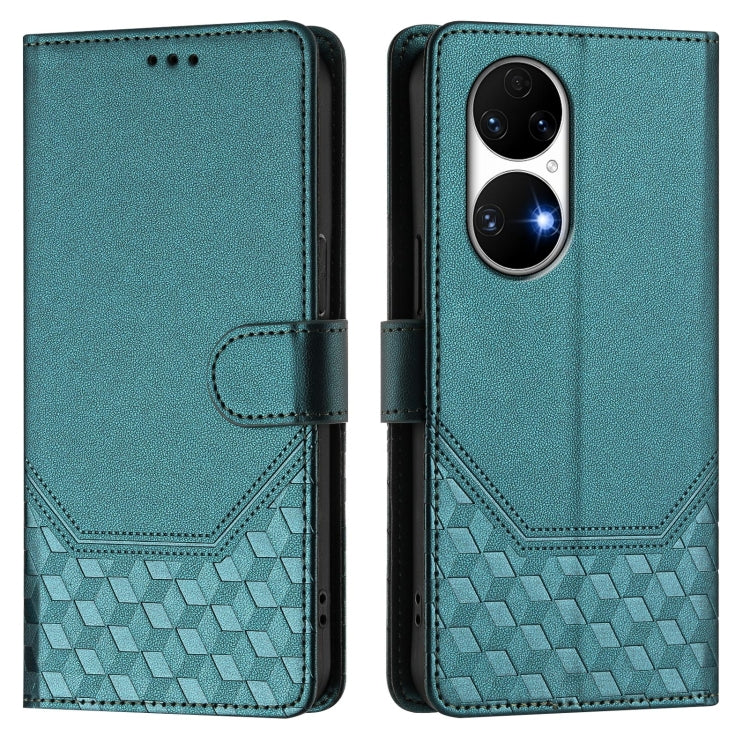 Funda de Cuero Rfid con Relieve en Panal para Huawei P50 (Verde Pavo Real)
