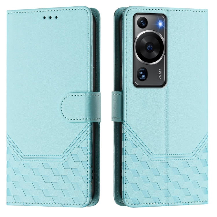 Funda de Cuero Rfid con Relieve en Panal para Huawei P60/P60 Pro (Verde Menta)