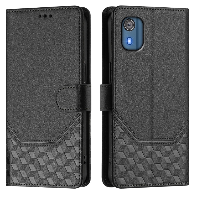 Funda de Cuero Rfid con Relieve en Panal para Nokia C02 (Negra)