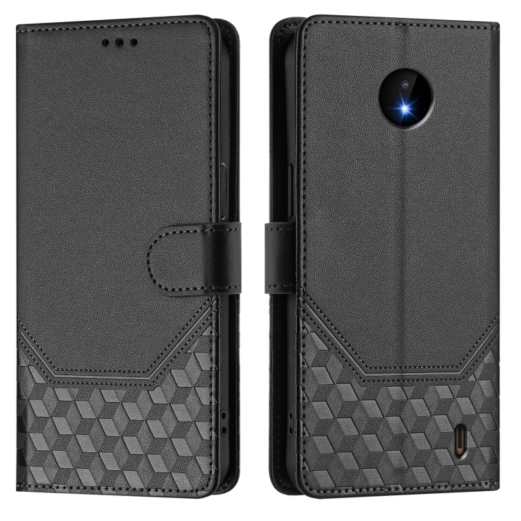 Funda de Cuero Rfid con Relieve en Panal para Nokia C10/C20 (Negra)