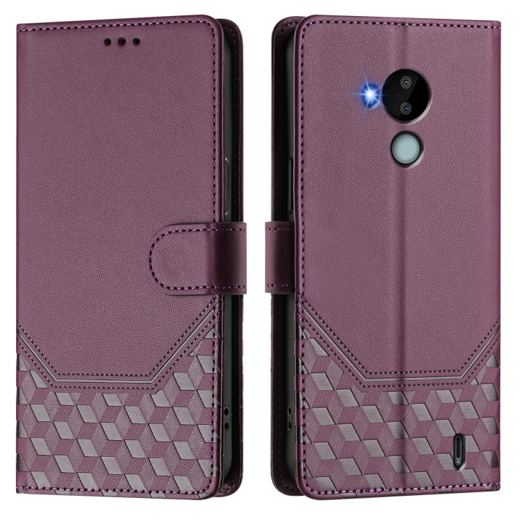 Funda de Cuero Rfid con Relieve en Panal para Nokia C30 (Violeta)
