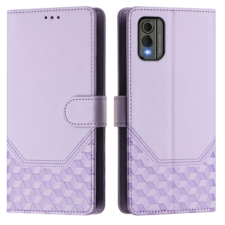 Funda de Cuero Rfid con Relieve en Panal para Nokia C32 (Morado Claro)