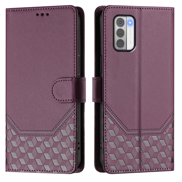 Funda de Cuero Rfid con Relieve en Panal para Nokia G42/G310 (Violeta)