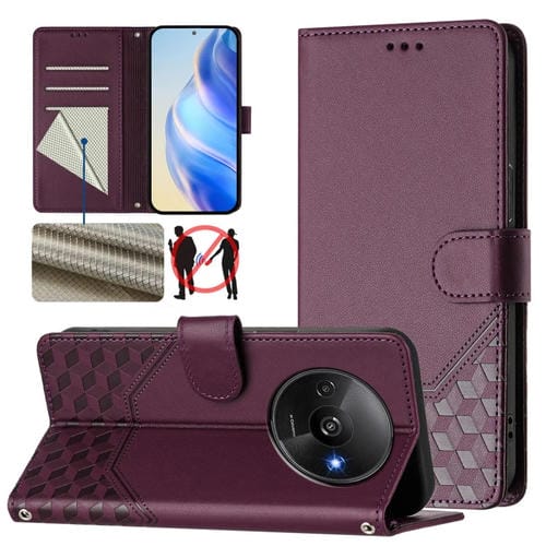 Funda de Cuero Rfid con Relieve En Panal para Redmi A3 4G Global/A3X 4G (Violeta)