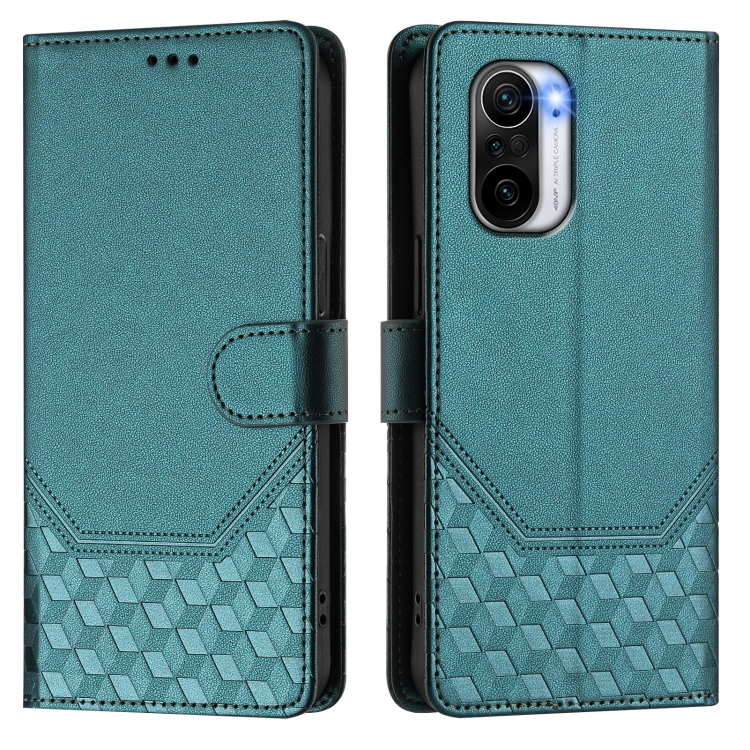 Funda de Cuero Rfid con Relieve En Panal para Redmi K40/K40 Pro (Verde Pavo Real)