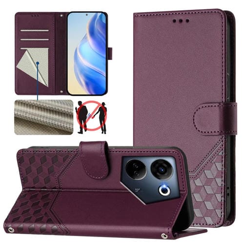 Funda de Cuero Rfid con Relieve en Panal para Tecno Camon 20 y Camon 20 Pro 4G (Violeta)
