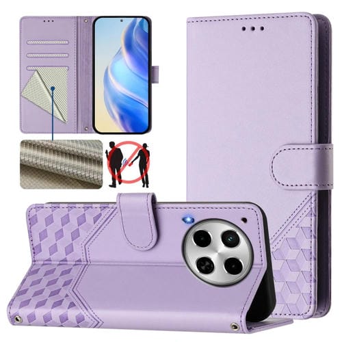 Funda de Cuero Rfid con Relieve en Panal para Tecno Camon 30 5G/4G (Morado Claro)