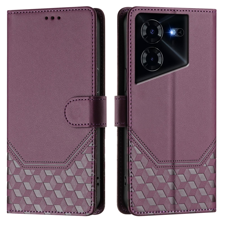 Funda de Cuero Rfid con Relieve en Panal para Tecno Pova 5 Pro 5G (Violeta)